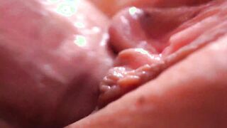 Extremily close-up pussyfucking. Macro Creampie