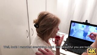 TUTOR4K. Young man poured tea on teachers clothes to make her strip and bonk
