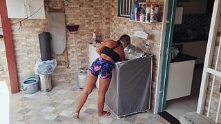 I came inside the ass of my neighbor's hot wife who was laying out clothes in the backyard!