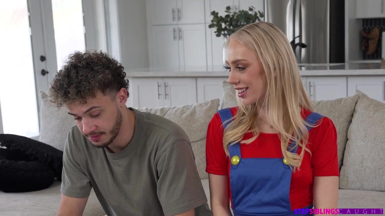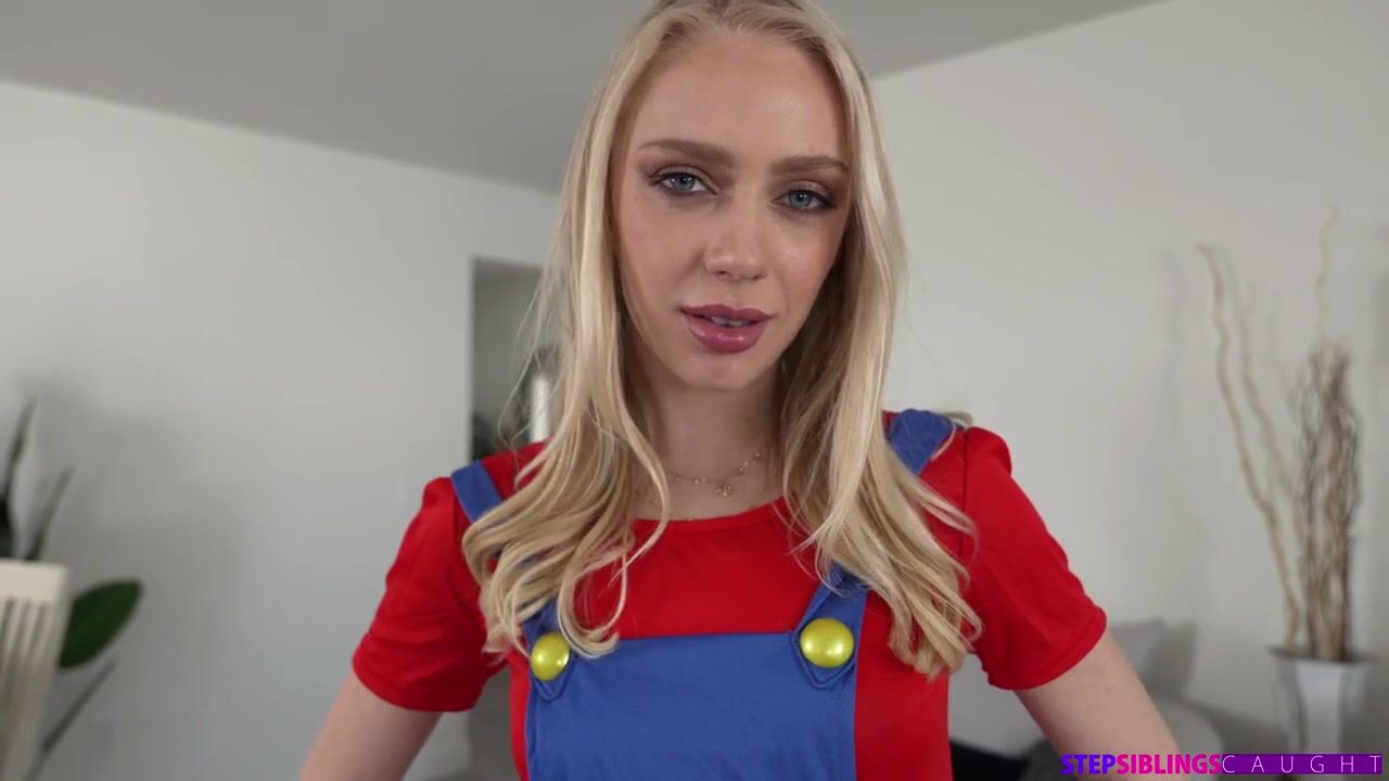 Braylin Bailey wants to go see the new plumber movie since she loves video games. Her stepbrother, Apollo Banks, walks in and teases her for playing another video game. Braylin asks him to take her to the movie, and he declines. He reminds Braylin that she's his stepsister not his date. In return, Braylin tells Apollo that she used to pretends she was a video game princess, but now that she's older her fantasies have matured.Later, Apollo is playing a game of his own when Braylin comes in dressed as a sexy version of her favorite plumber. Braylin bets Apollo that she can beat him at his game. If she wins, he'll have to put his dick in her castle and then cum all over her titties. When Braylin comes out victorious, she's gracious enough to deliver a nice deep throat BJ to warm Apollo up for their hardcore romp.Braylin leaves and returns dressed as a cum craving princess for her prize. Pulling Apollo's pants down and her thong aside, she straddles the stiffie and rides him in cowgirl. Ditching the costume and her underwear, Braylin turns around to go for a reverse cowgirl ride. Then she gets on her knees so Apollo can dick her down in doggy. On her back, Braylin spreads herself out for Apollo to give it to her nice and deep in missionary. As Apollo is ready to blow his load, Braylin gets him to finally agree to cum inside her castle after all.