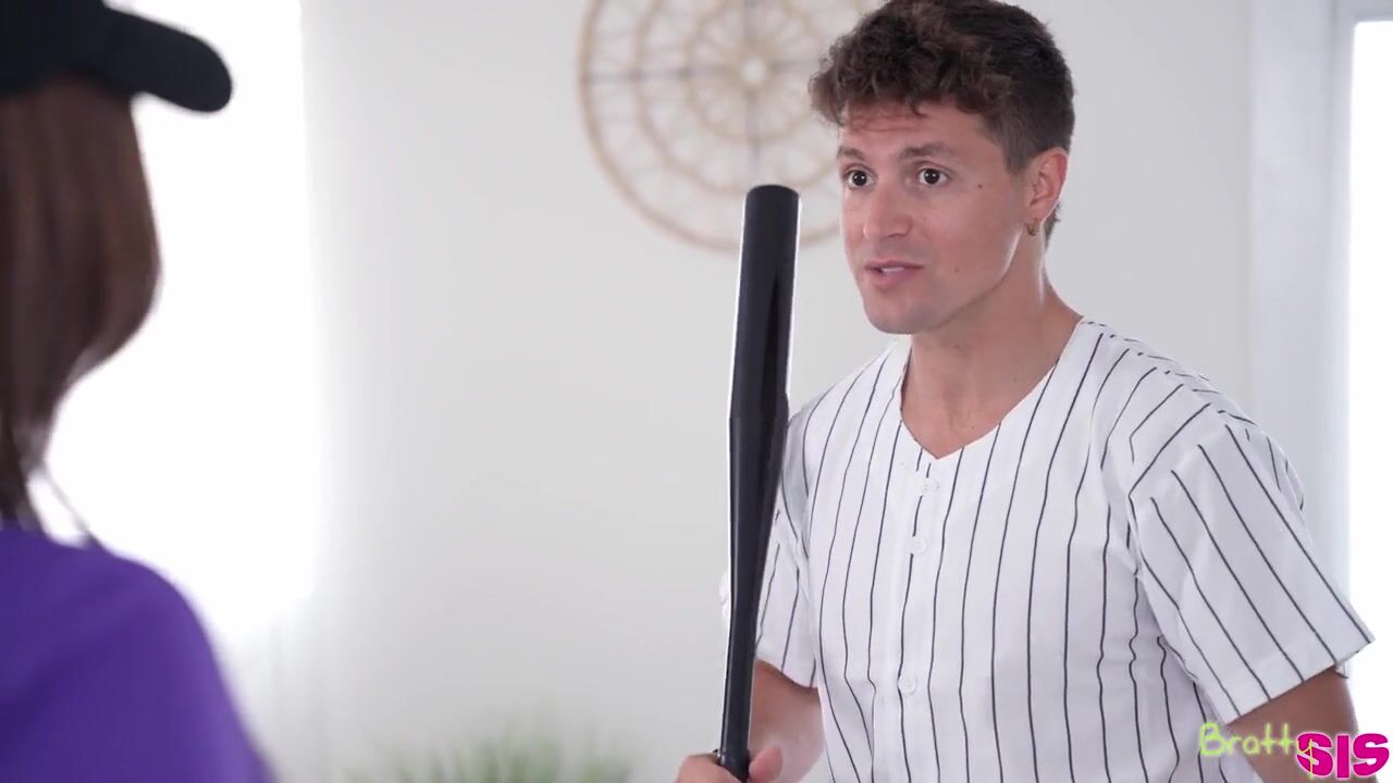 Jay Romero is working on his swing when his stepsister, Rissa May, walks in on him. She suggests that she wants to play, but Jay points out that changing into his clothes doesn't make him good at baseball. Rissa claims that she's good and tries again to get Jay to play with her, but he isn't having any of it. He suggests that Rissa become a cheerleader or something.Rissa leaves the room and returns dressed in a business slutty outfit. She claims she's a commentator and instructs Jay to work on his swing so she can practice. As Jay does as he's told, Rissa provides a commentary that gets increasingly sexual until Jay just exclaims that Rissa wants to fuck him. He has a point, so Rissa stops beating around the bush. Popping her huge tits out, the teen drops to a crouch and begins slurping and sucking Jay's stiffie.Getting Rissa to her feet and turning her around, Jay leans his stepsis over the counter and shoves in from behind. Jay takes a turn on his back on the kitchen island, sucking Rissa's jugs as she rides him in cowgirl. She follows that up with a titty fuck, then takes Jay's place on the countertop so he can pound her pussy nice and deep. Pulling out, Jay blows his load on Rissa's shaved twat. Now that they're finished, Rissa announces she's going to tell her mom about their liaison so Jay can't play baseball anymore.