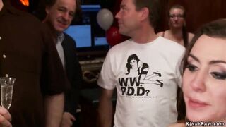 Bound MILFs public banged at party