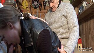 Horny french blonde slut hard analyzed and facials in 3some with Papy