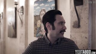 Big tits teen babysitter threesome with curvy MILF and her hubby